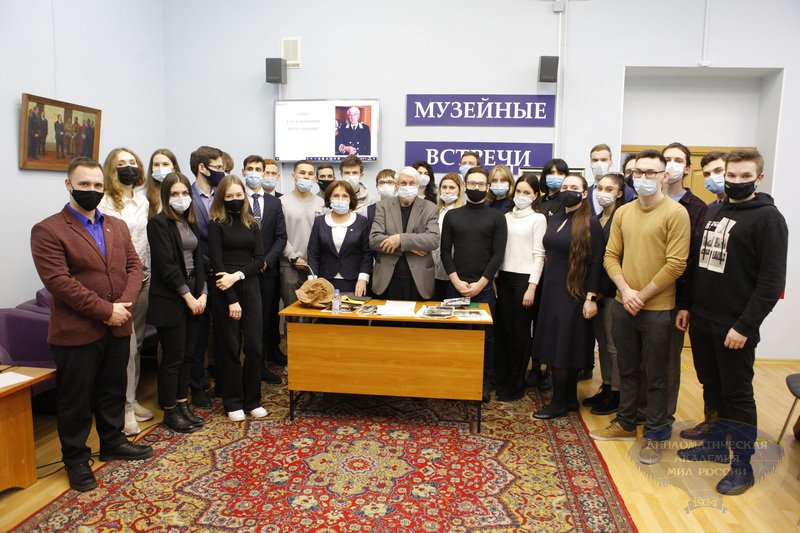 В Дипломатической академии МИД России состоялась встреча Чрезвычайного и Полномочного Посла, доктора исторических наук, кандидата экономических наук, заслуженного работника дипломатической службы России О.Г.Пересыпкина с членами Клуба друзей музея.
